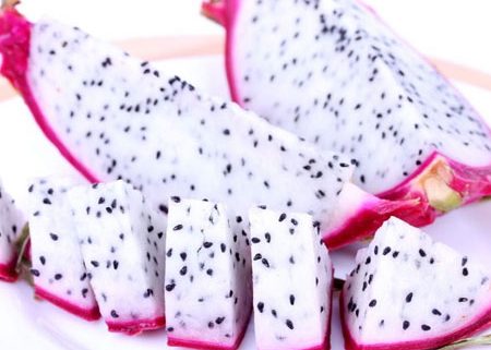 Coloque uma fatia de pitaya no copo com o gelo, o limão e o gin. Mexa tudo e acrescente a outra fatia e a tônica.