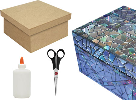 O passo a passo é bem simples: basta cortar o CD em diversas partes e depois colar na caixa com o lado metalizado para cima, criando um mosaico. Você também pode usar a técnica para decorar outros objetos, como molduras de espelhos e quadros.