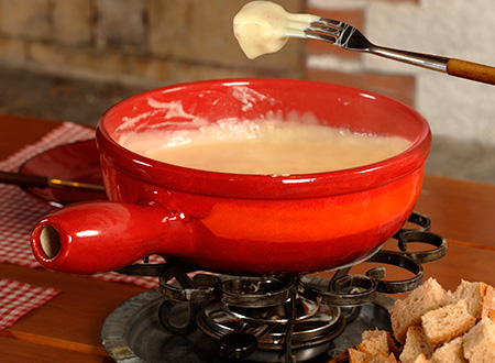 Modo de preparo: Comece passando o alho no fundo e nas laterais na panela de fondue. Em outro recipiente, dissolva o amido de milho no vinho e acrescente o conhaque e a noz moscada. Depois, passe para uma panela, coloque o queijo e leve ao fogo baixo até derreter. Mantenha no aparelho de fondue e sirva com o pão cortado em cubos.