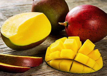Modo de preparo: Corte a manga em cubos e coloque os pedaços no congelador ou freezer. Depois de congelados, bata no liquidificador, acrescentando aos poucos os outros ingredientes. Leve ao freezer por uma hora, retire e bata novamente. Volte para o congelador por mais meia hora e sirva.