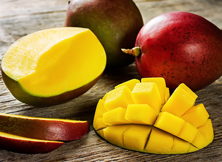 Modo de preparo: Corte a manga em cubos e coloque os pedaços no congelador ou freezer. Depois de congelados, bata no liquidificador, acrescentando aos poucos os outros ingredientes. Leve ao freezer por uma hora, retire e bata novamente. Volte para o congelador por mais meia hora e sirva.