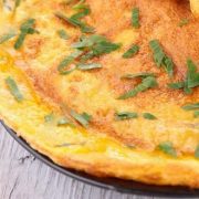 Bata os ovos e coloque em uma frigideira untada. Acrescente o presunto e o queijo picados e tempere. Espere a omelete firmar e vire, para dourar dos dois lados.