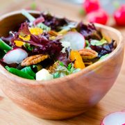 Modo de preparo: Arrume as folhas de alface em um prato. Por cima, coloque o repolho, a cenoura, a manga e as nozes, quebrando em pedaços. Ajeite as fatias de abacate em um dos cantos e para finalizar tempere a gosto.