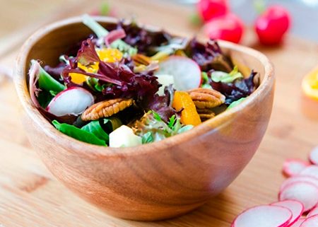 Modo de preparo: Arrume as folhas de alface em um prato. Por cima, coloque o repolho, a cenoura, a manga e as nozes, quebrando em pedaços. Ajeite as fatias de abacate em um dos cantos e para finalizar tempere a gosto.