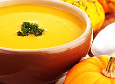 Ferva a água e coloque a abóbora, limpa e descascada, para cozinhar por 20 minutos. Doure o alho no azeite e bata no liquidificador com a abóbora. Adicione o gengibre e bata mais um pouco. Depois é só aquecer o caldo, temperar e servir com o gergelim.