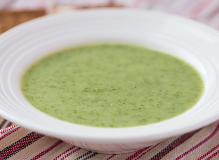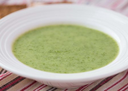 Doure o alho no azeite, refogue a alface picada e coloque a cebolinha. Adicione a água e deixe cozinhar até ferver. Acrescente os tabletes de caldo de galinha e cozinhe por dez minutos. Espere esfriar e bata no liquidificador. Na hora de servir, volte o caldo para a panela, para aquecer.