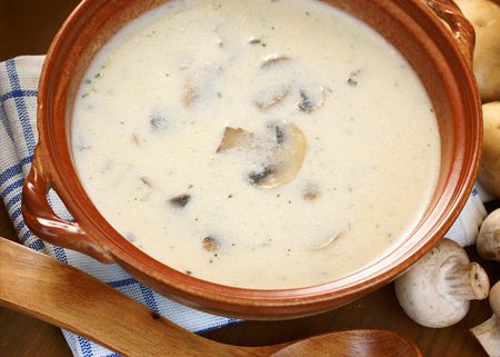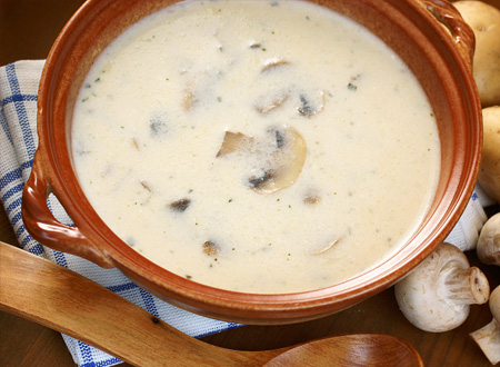 Em uma panela, coloque o leite e a água. Acrescente a mistura para sopa e leve ao fogo médio. Quando estiver no ponto de fervura, adicione o shitake e a manteiga e mexa até engrossar. Sirva com o queijo ralado.